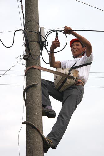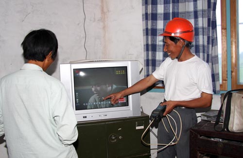朱福华是新店镇的广播电视维护员,今年46岁,2001年他被聘为新店镇广电站的专业维护员,在这个岗位上一干就是七、八个年头。在新店镇西部地区的祝套、胡港、汤居等六个村,你会经常看到他走村串户为用户服务的身影,他在服务中总把满意送到用户,把真情送到用户。