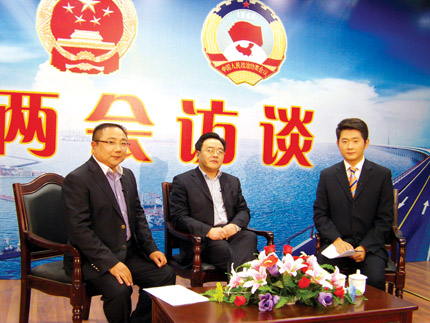 “两会”召开在即,县文广传媒中心积极做好宣传“两会”的各项准备工作。电视台抽调精干力量前期策划录制了三档《两会访谈》特别节目,在“两会”期间推出。图为访谈节目录制现场。